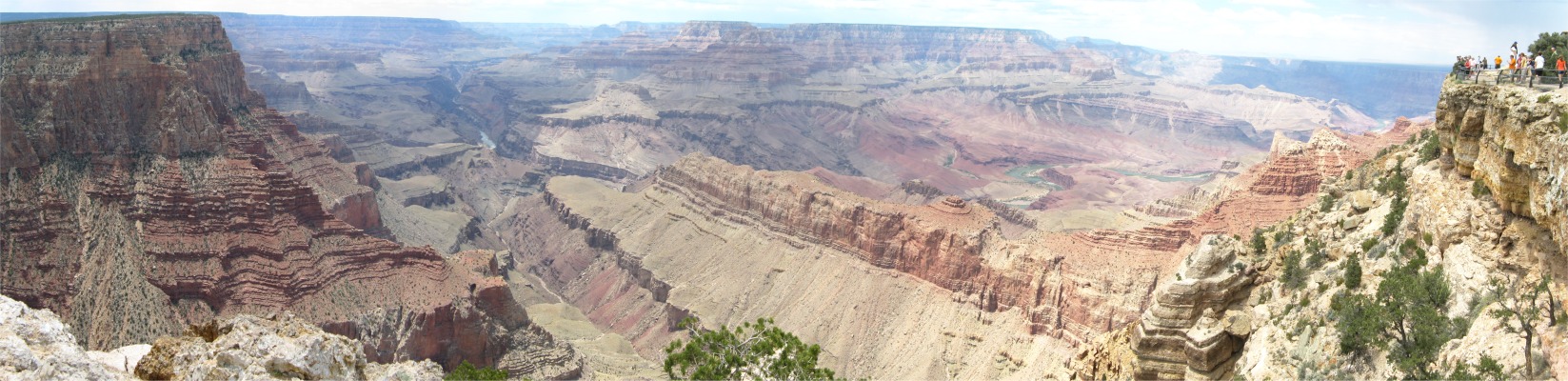 From Moran Point, I next called at the Grandview Point. Prospectors had discovered copper half a mile down the cliff edge (don't ask how), and started mining into the cliff side. The ore was rich, but having to cart it to the mesa surface by mule, and then ship it for smelting, proved uneconomical. One enterprising miner decided to build a cabin and arrange for 'tourists' to travel by stagecoach all the way from Flagstaff. They would be put up in the cabin, and transported down the cliff by mule. Business was good, and soon he had moved up from a cabin to a hotel, The Grandview, on the cliff edge. However, when the railroad arrived to the Grand Canyon, terminating at Grand Canyon village, the tourists shunned the long stagecoach trip, and the Grandview went into rapid decline. Nothing remained of this grand building.