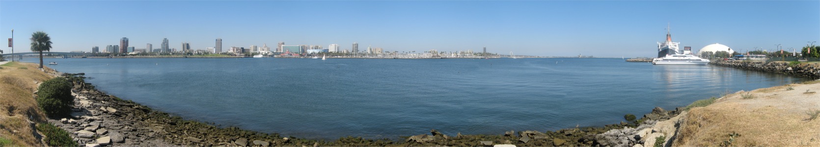 I parked myself quite near to the Queen Mary and looked across the Queensway Bay to Shoreline Village and downtown Long Beach. It appeared as a gleaming, up market resort, oozing with wealth (I might have had a different opinion if I had been close up to it).